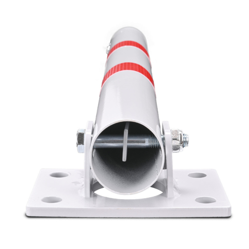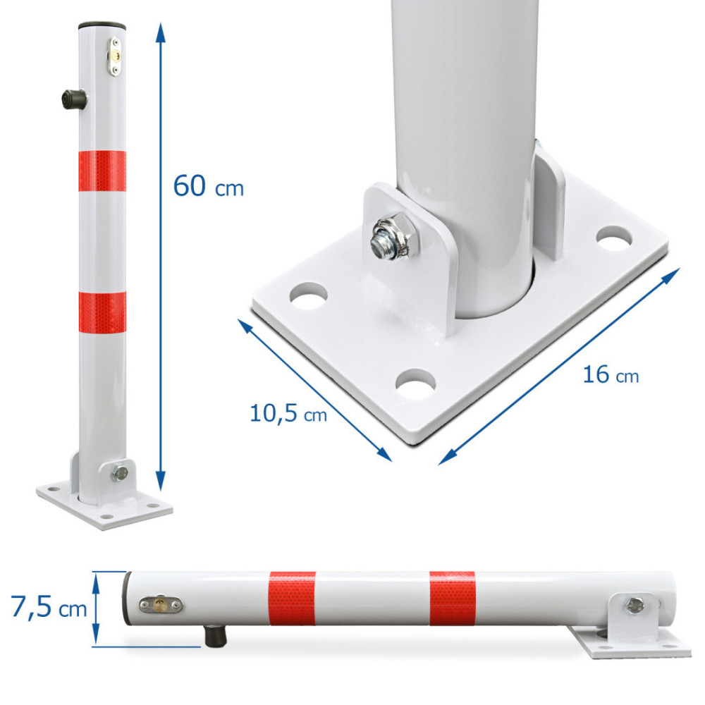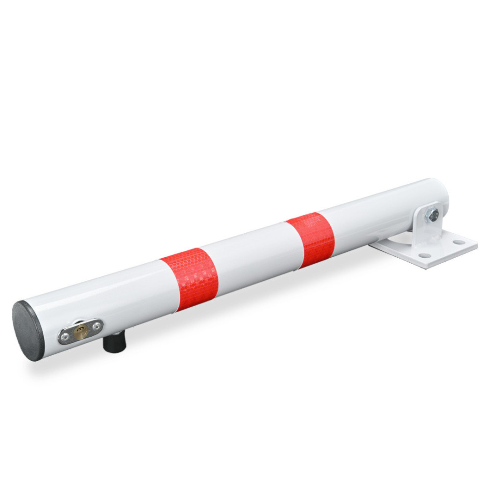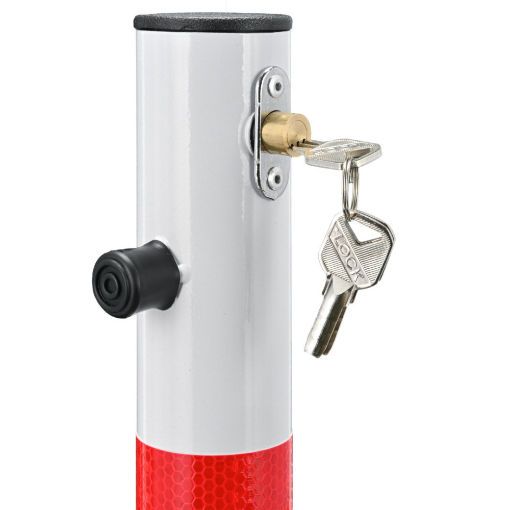 Barieră de parcare rotundă pliabilă cu încuietoare, cu înălțimea maximă de 60 cm. Benzile roșii sunt reflectorizante. Bariera de parcare servește la protejarea și rezervarea locului de parcare. Este o soluție ideală pentru proprietarii de apartamente, case sau parcări de firmă, care doresc să aibă siguranța că locul lor nu va fi ocupat neautorizat. Datorită fixării solide în sol și posibilității de închidere cu cheie, oferă o protecție de încredere, iar mecanismul său pliabil permite o utilizare comodă și rapidă.