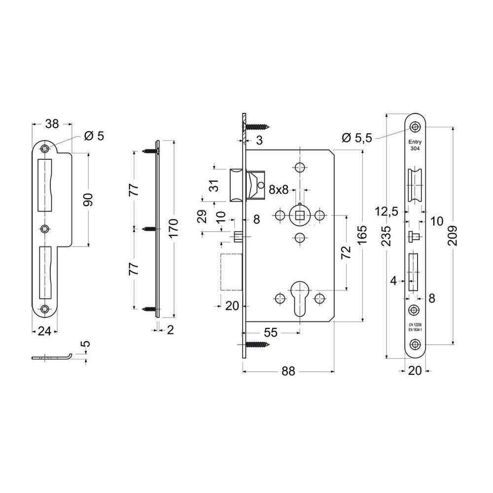 EN.304.SZ.PA.KO.72.55.20.L broască pentru ușă, Inserție...