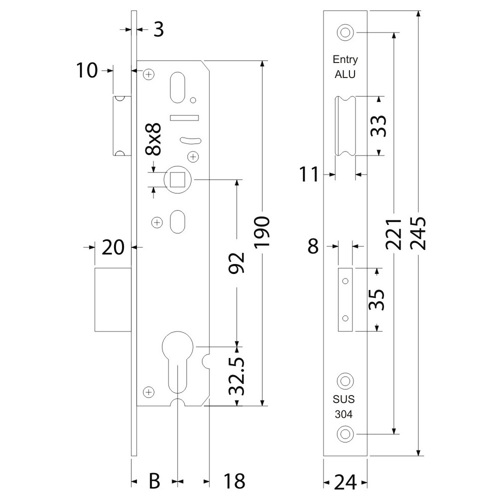 EN.A01.92.24N ALU blocaj mortise, Inserție cilindrică PZ