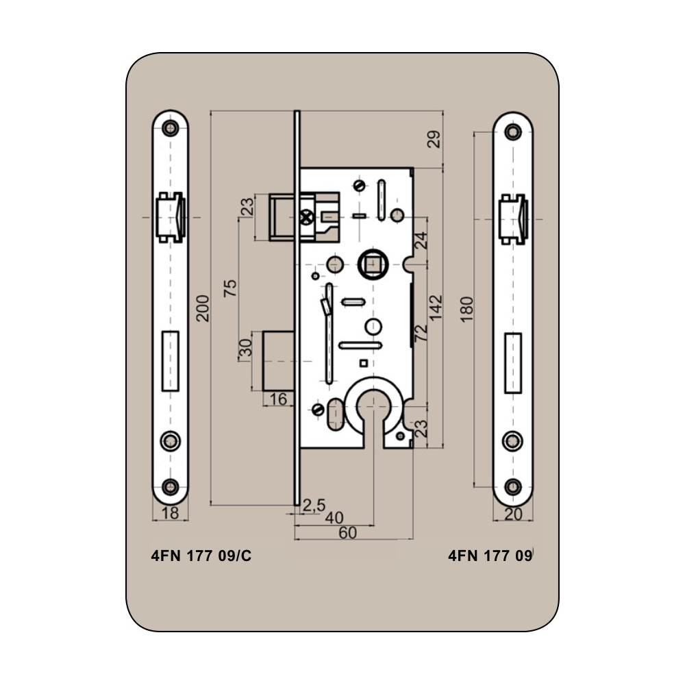 Încuietoare clădire V60/72/40, Inserție cilindrică PZ