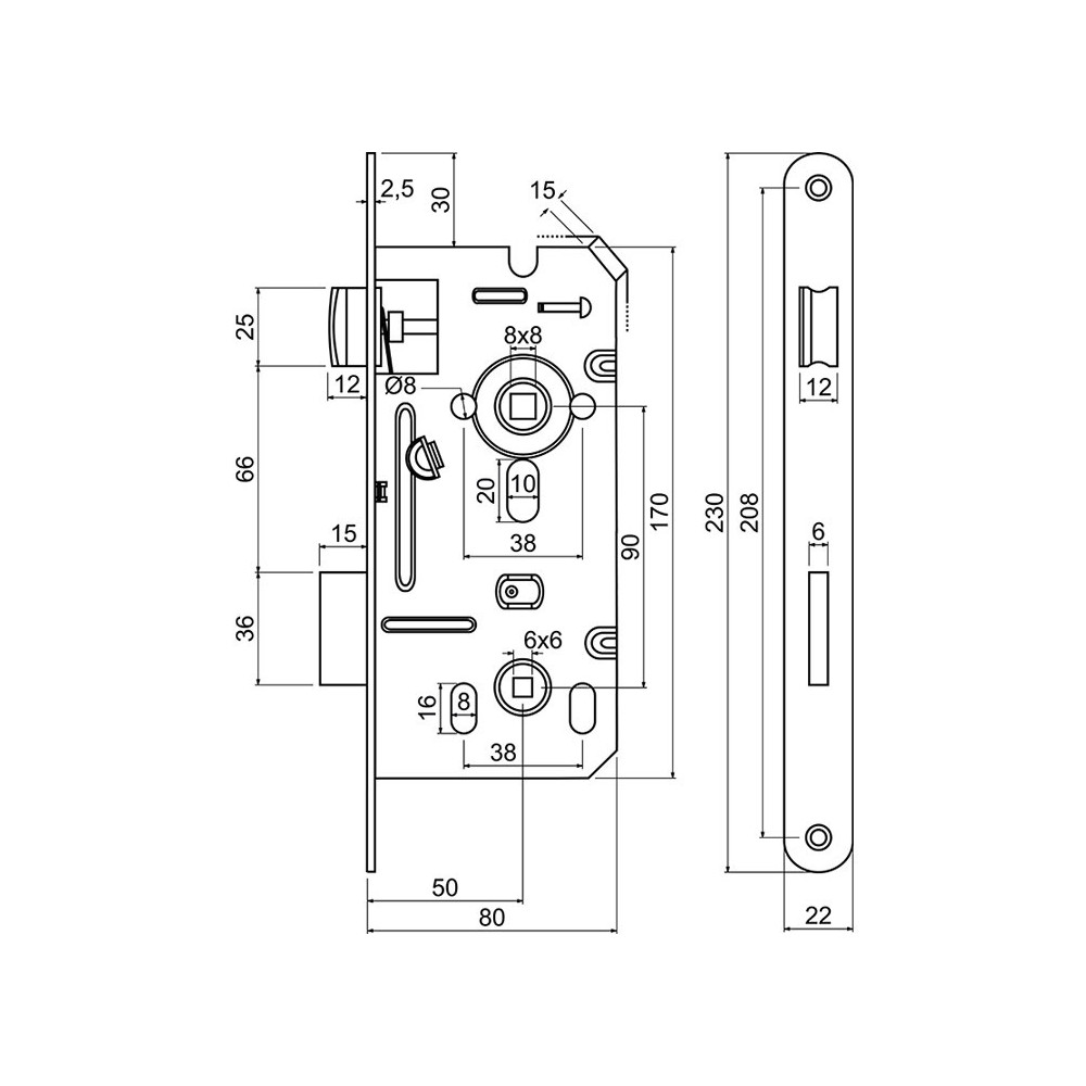 Z.301-WC.90/50/22.PL.CE broască ușă WC