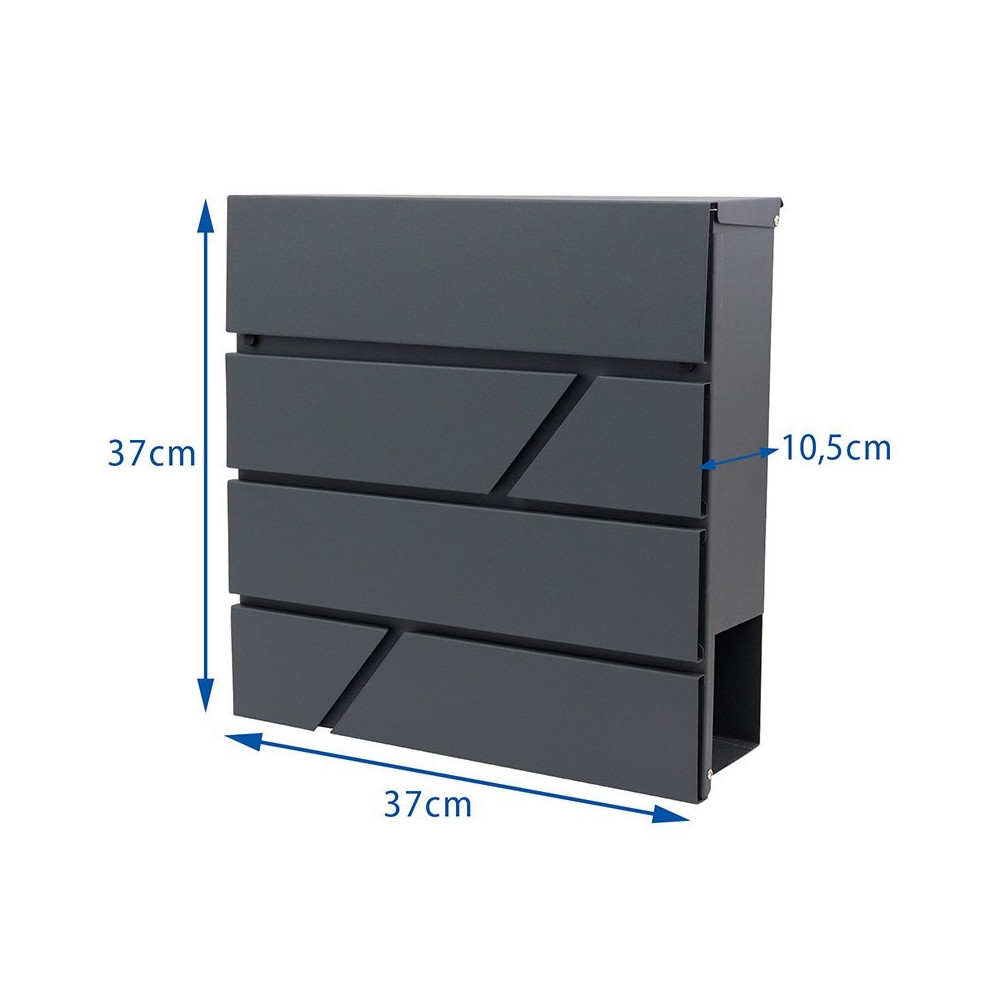 Cutie poștală de înaltă calitate realizată din oțel galvanizat cu vopsea pulbere, datorită materialului folosit, cutia poștală este rezistentă la condițiile meteorologice. A fost conceput pentru confortul utilizatorului și ținând cont de tendințele estetice actuale. Este dotat cu un compartiment suplimentar pentru ziare și pliante mai mari. Capacul superior al cutiei protejează foarte bine corespondența de umezeală și ploaie. Setul include șuruburi de montare, în timp ce orificiile sunt pregătite pe spatele cutiei - pentru o instalare rapidă și ușoară.