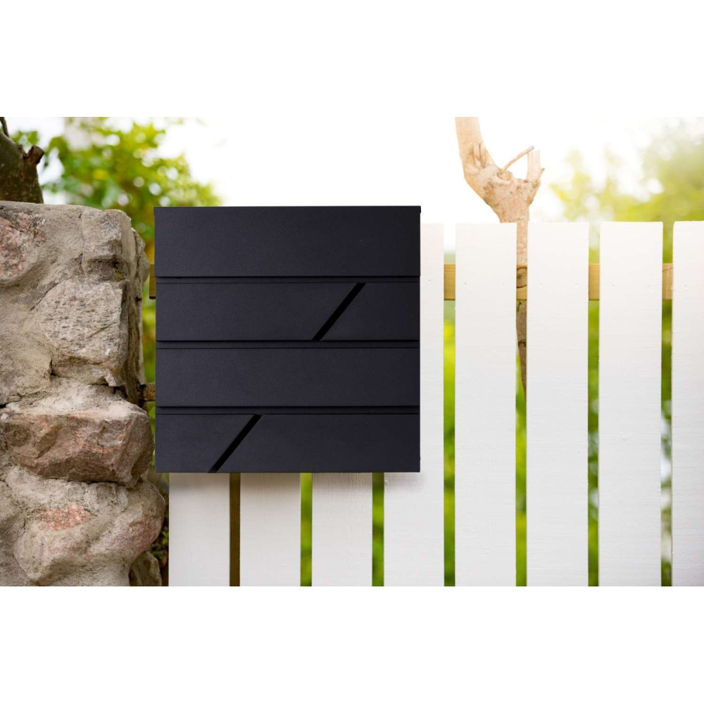 Cutie poștală de calitate din oțel galvanizat cu acoperire cu pulbere într-o culoare antracit la modă, care va fi un plus frumos pentru gardul tău. Este dotat cu un compartiment suplimentar pentru ziare și pliante mai mari. Funcțional și suficient de mare pentru cantitatea de corespondență primită. Capacul superior al cutiei poștale protejează foarte bine corespondența de umezeală și ploaie. Cutia are orificii de montare pe spate - pentru o instalare rapida si usoara.