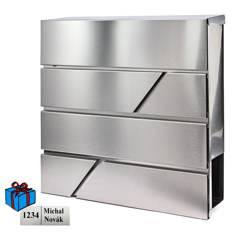 Cutie poștală din oțel inoxidabil de înaltă calitate. Datorită folosirii unui material adecvat, cutia este rezistentă la condițiile meteorologice și va servi mult timp. A fost concepută pentru confortul utilizatorului și ține cont de tendințele estetice actuale. Este echipat cu spațiu suplimentar pentru ziare și pliante mai mari. De sus, toată corespondența este foarte bine protejată de umiditate și ploaie datorită unui clapă specială care acoperă căsuța poștală. Setul conține elemente de montare, există o gaură de montare pe partea din spate a cutiei - pentru o instalare și mai rapidă și mai ușoară