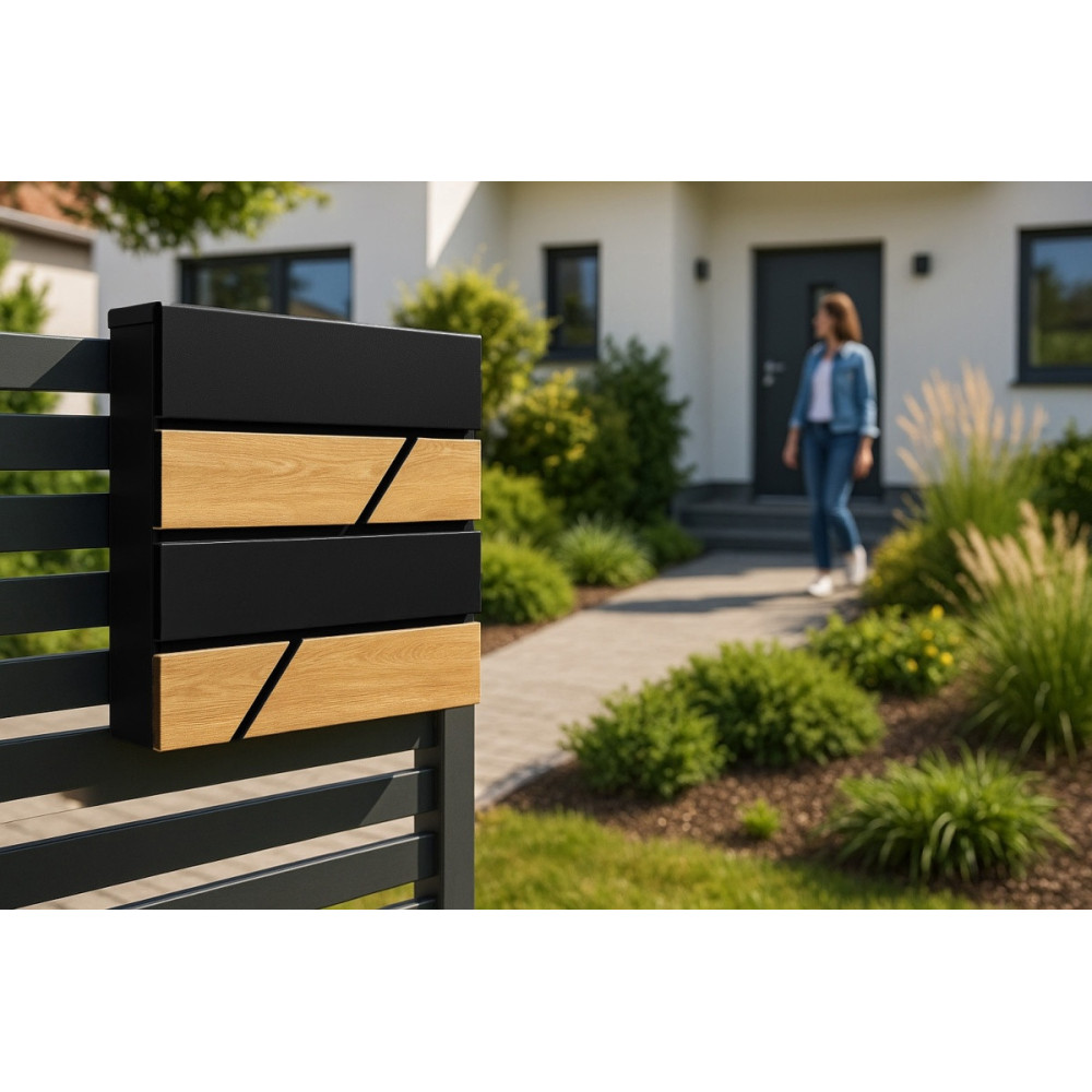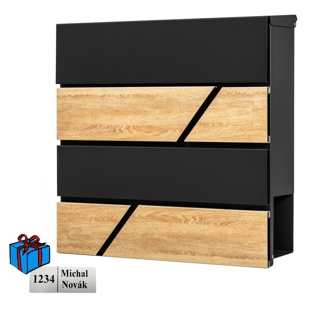 D3638 Cutie poștală neagră + imitație lemn