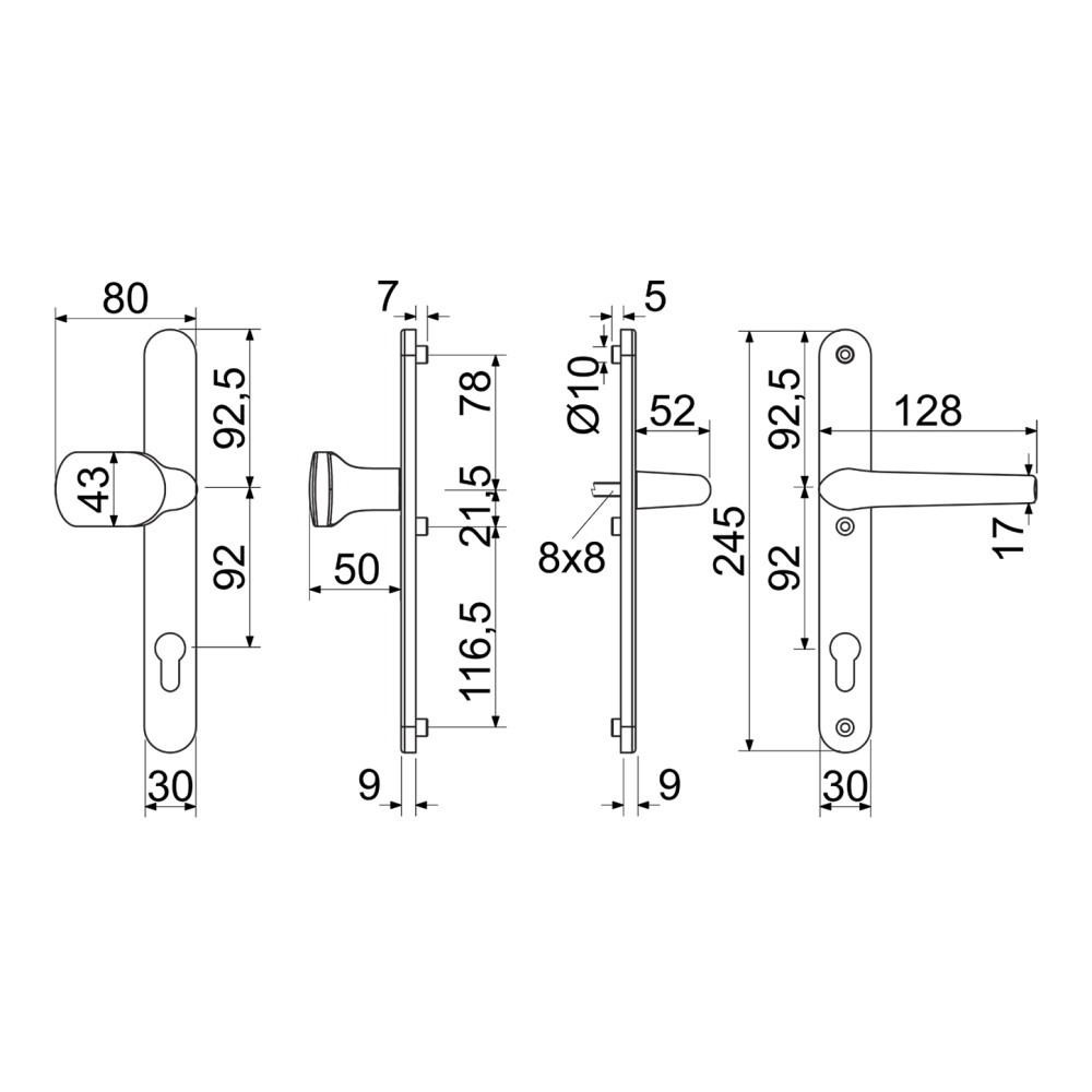 RHD.005.92.F4/F9016 mâner + bară pentru uși din plastic