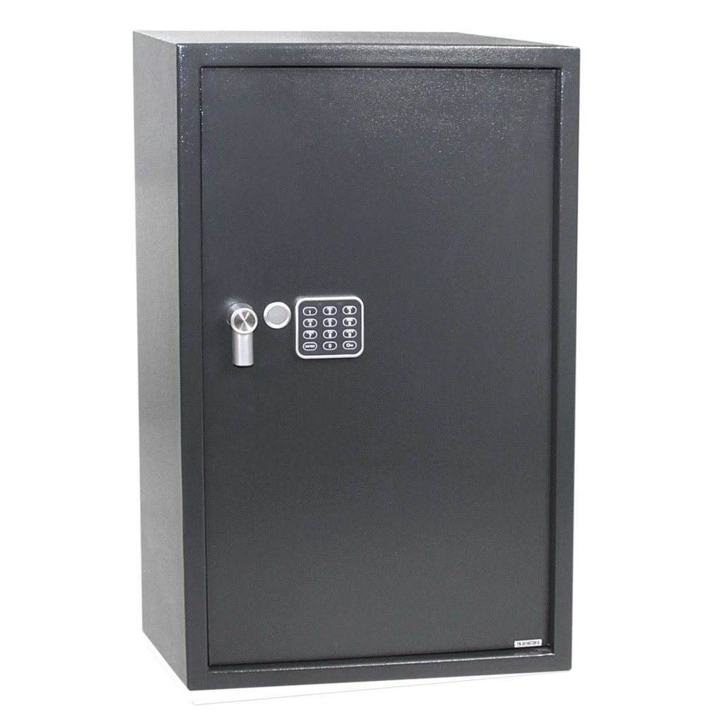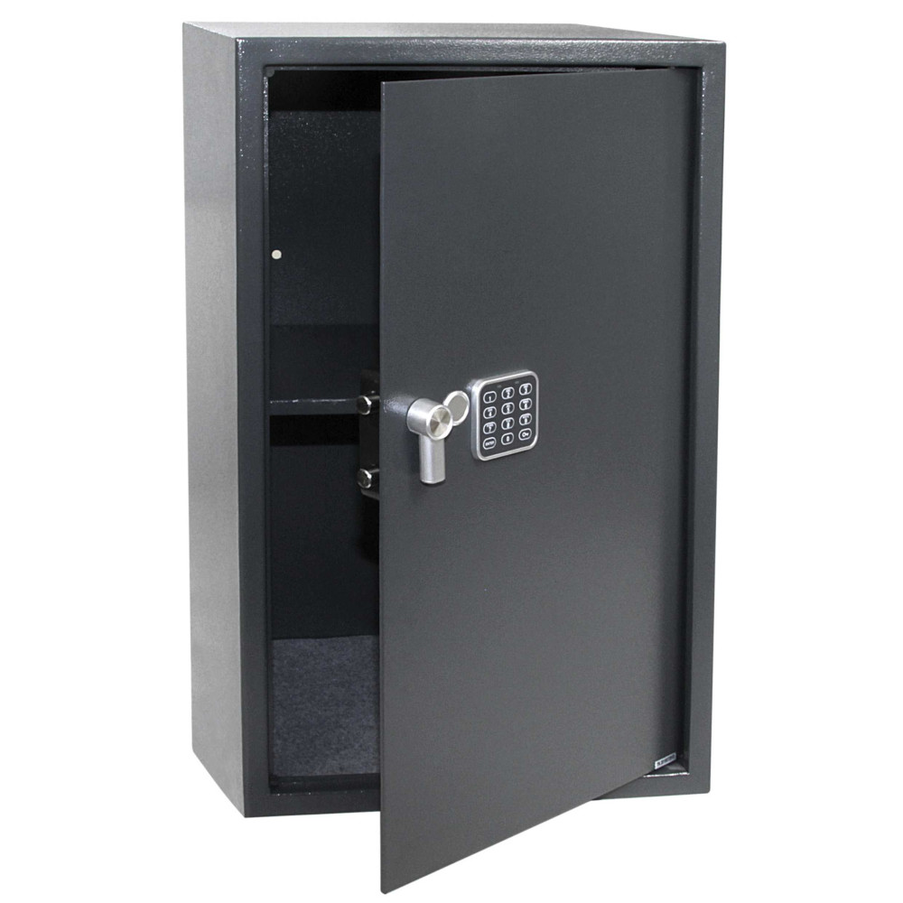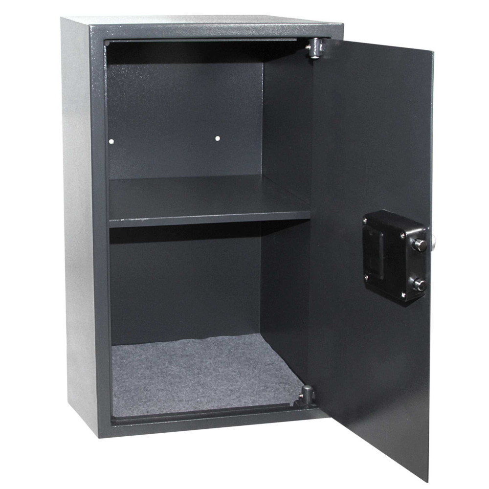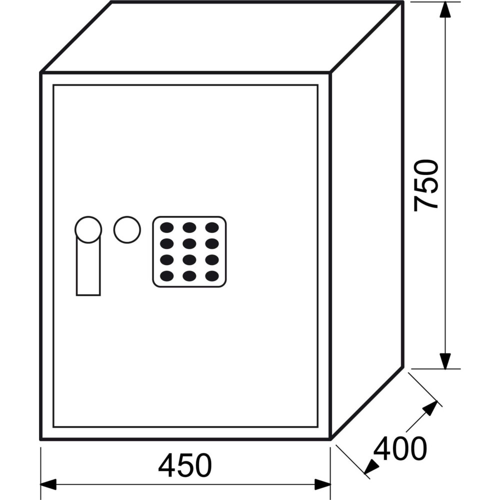 Seif din oțel sigur cu blocare electronică, partea din față are o tastatură numerică și o manetă de deschis. Codul de utilizator poate conține 3-8 cifre, adică. până la 100.000.000 de combinații de coduri. Blocarea timpului blocării după 3 încercări incorecte. Indicație scăzută a bateriei. Spațiul interior, care este împărțit la un raft, poate reține până la 10 foldere.