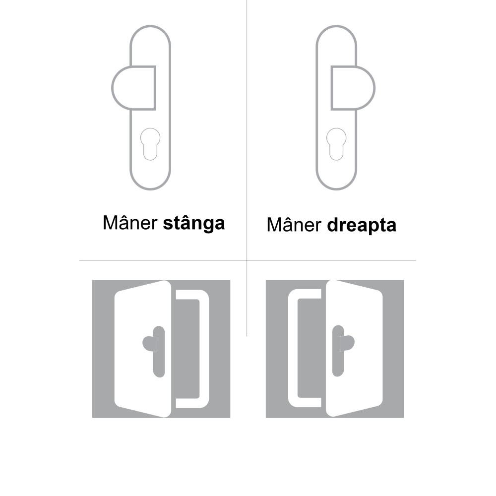 Feroneria este în versiunea mâner -clanță, produsele sunt la dispoziție în configurația stânga, dreapta. În comandă specificați poziția.