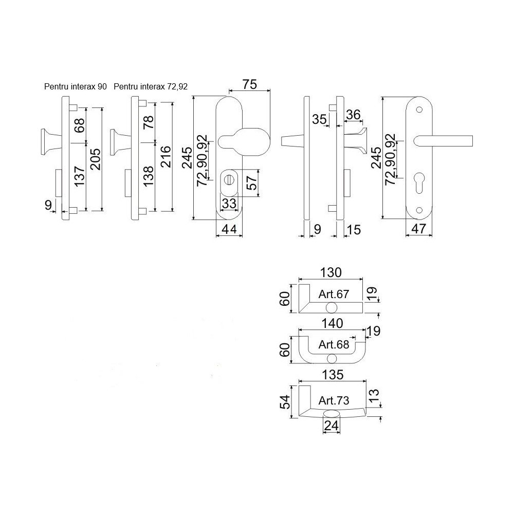 • Sistem modular – posibilitatea de a înlocui individual mânerul, clenca, rozeta sau capacele plăcilor.