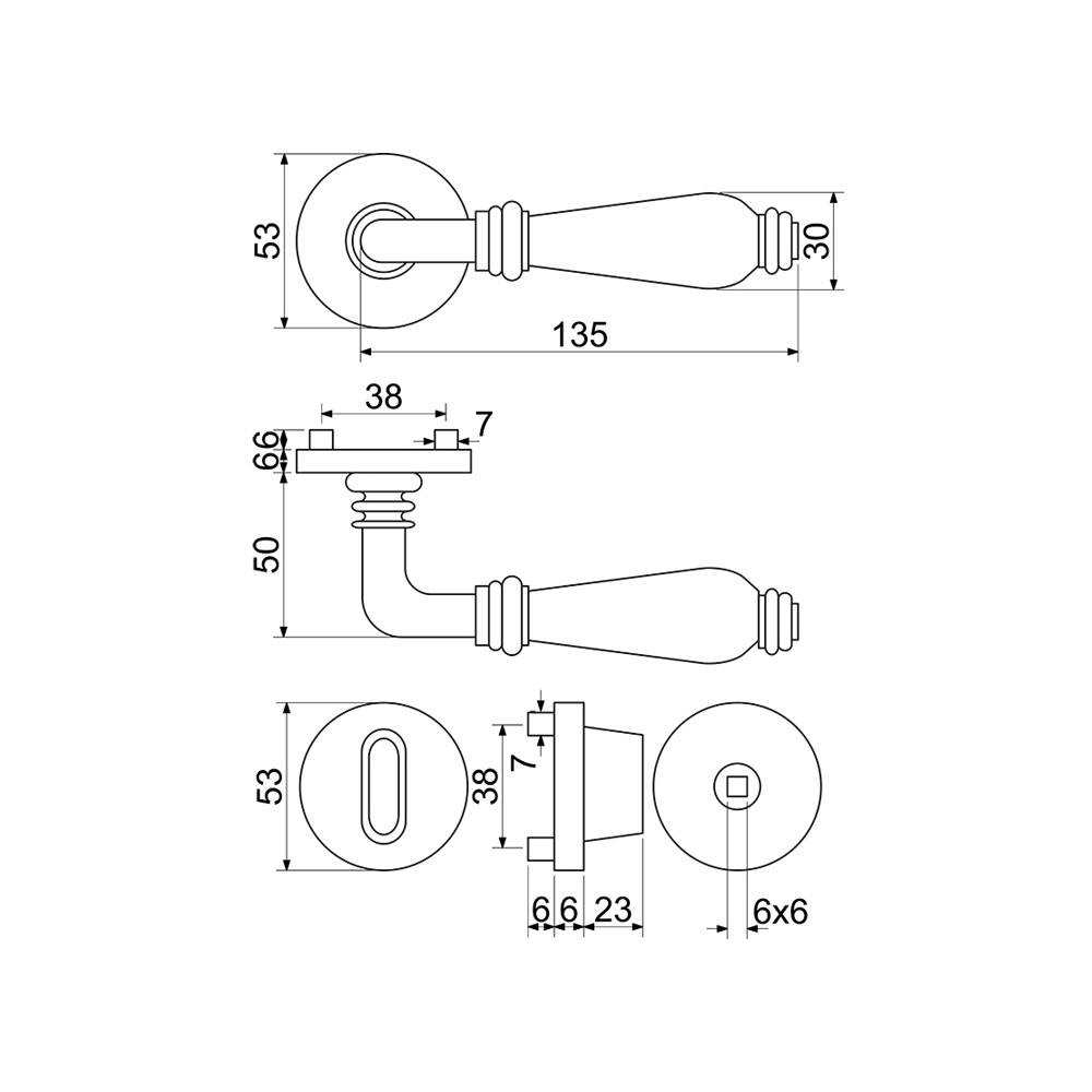 - Rozetele divizate (partea inferioară a feroneriei) sunt pentru toaletă, oferim și mânere pentru cheie sau pentru cilindru