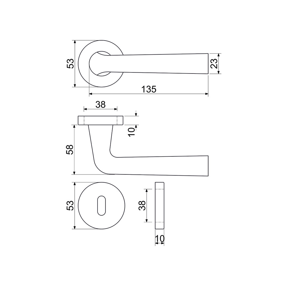 - Rozetele divizate (partea inferioară a feroneriei) sunt cu orificiu pentru cheie, oferim și mânere pentru cilindru sau toaletă