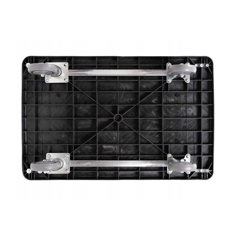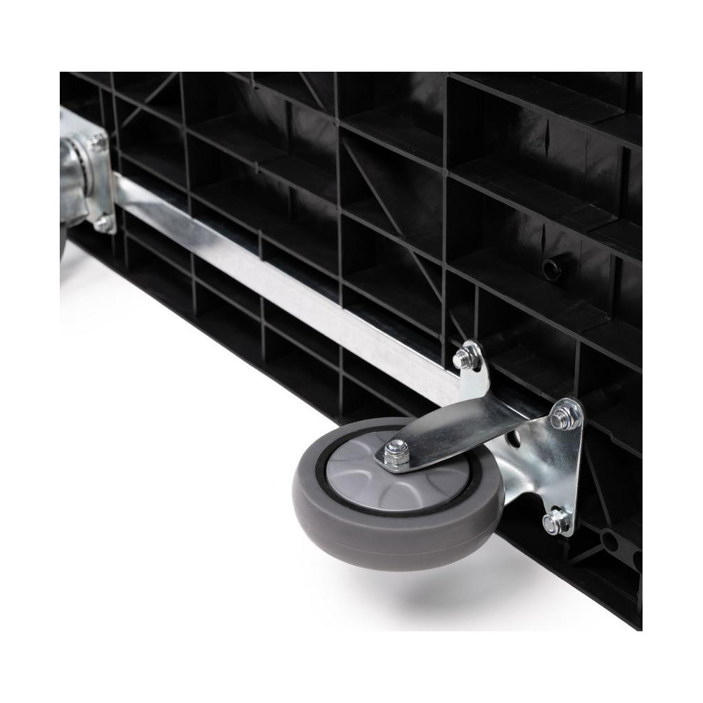 Construcția asigură o distribuție uniformă a greutății, protejând platforma de îndoire și roțile de suprasolicitare.